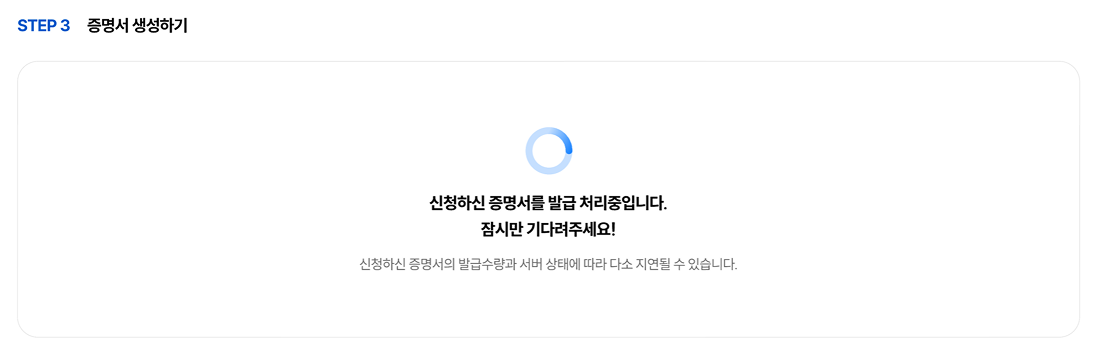 3. 증명서를 발급하고 있는 단계의 화면입니다.